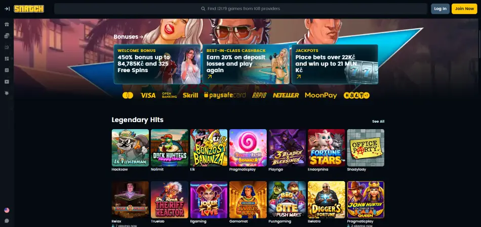 Snatch Casino je moderní online kasino zaměřené na mezinárodní publikum, které nabízí široký výběr hazardních her. Platforma sdružuje tisíce her od desítek poskytovatelů, včetně automatů, stolních her a živého kasina, a podporuje jak klasické měny, tak kryptoměny. Díky pohodlnému rozhraní a pravidelným bonusům se Snatch Casino snaží vytvořit příjemné herní prostředí jak pro začátečníky, tak pro zkušené hráče.